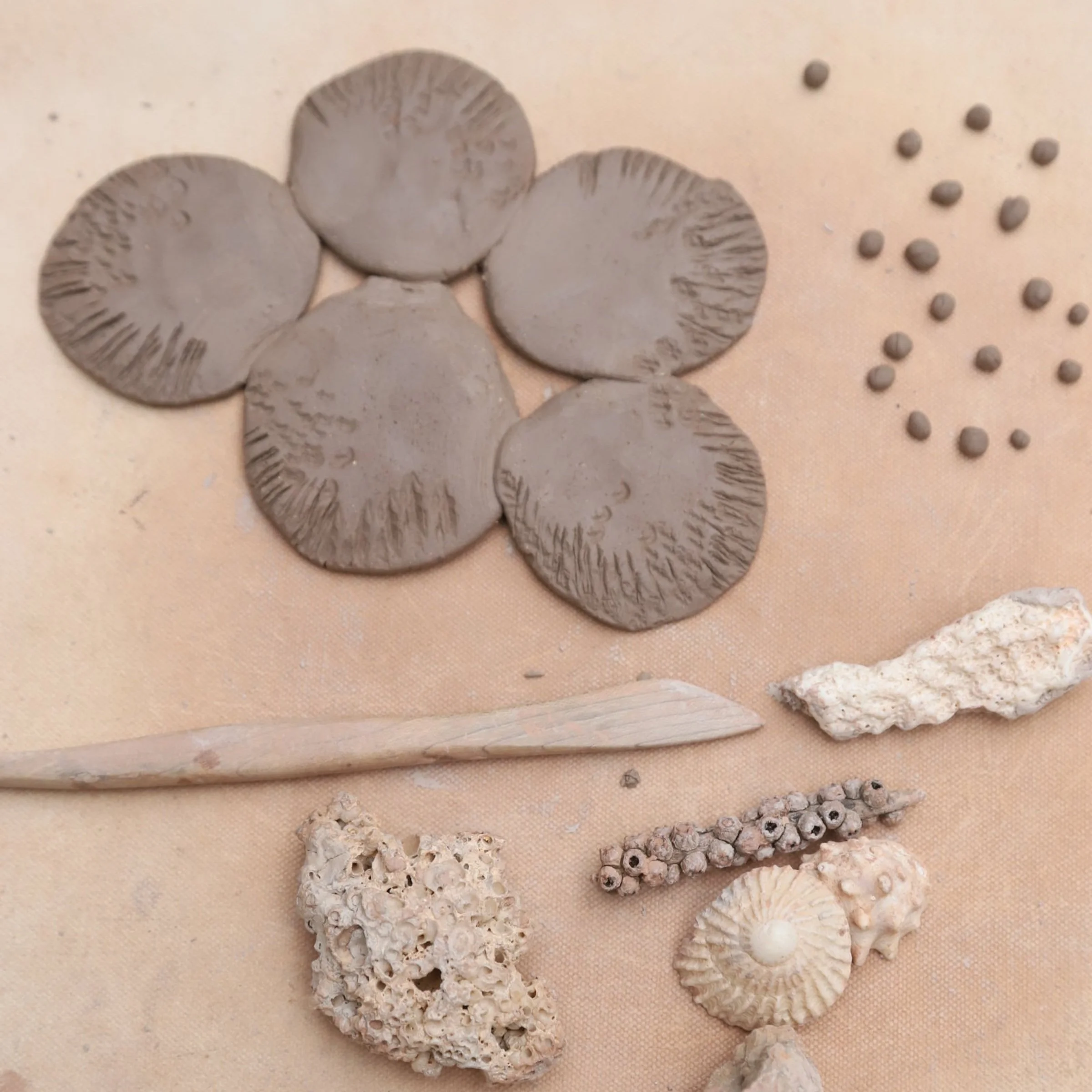 Madalena lives and works in Monchique, Portugal. Both her parents are artists and she grew up surrounded by nature and beautiful surroundings. These influences show in her ethereal art pieces. Her raw materials are sourced locally, and she frequently uses found nature pieces as tools to create patterns and to bring texture to her art pieces.